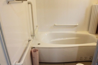 *お風呂にも手すりをたくさん付けたので、一人でも入浴が可能。