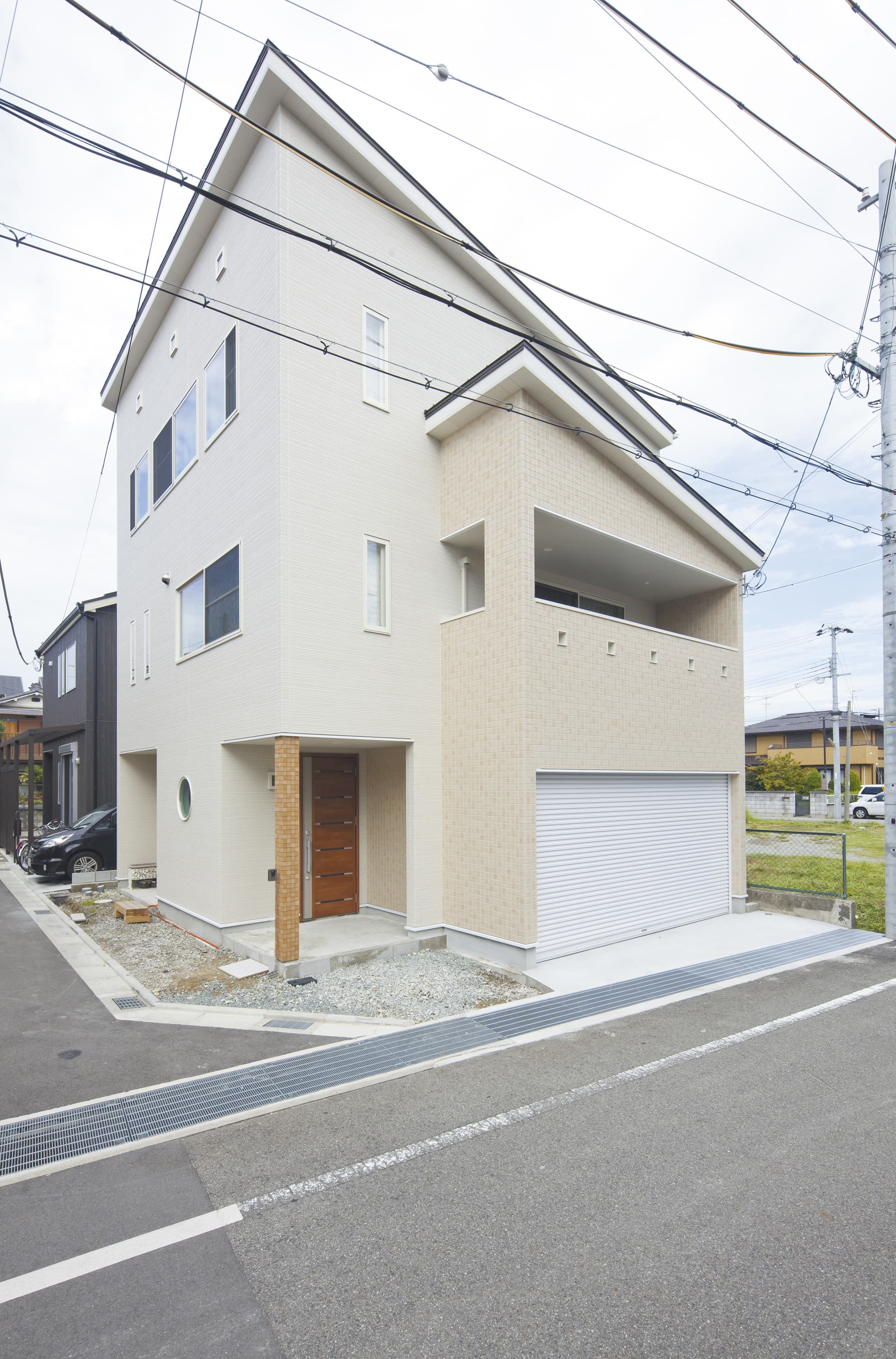 テクノフレーム工法の強さを活かし、2台分のビルトインガレージと屋上のある家