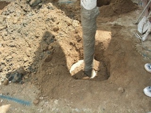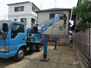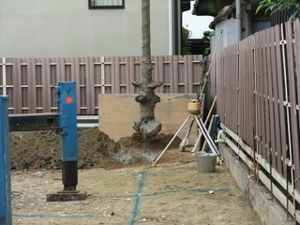 タテ杭を、深さ4m~5mの深さ迄堀り入れています。