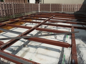 地盤の強化ができたあとは鉄骨土台据え付け工事を行いました。
