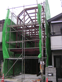 鉄骨の丈夫な構造により、狭小地での3階建て、16帖・20帖などの広いLDK、ハネ出しの構造などを実現しています。従来の工法よりも格段に設計の自由度が増します。